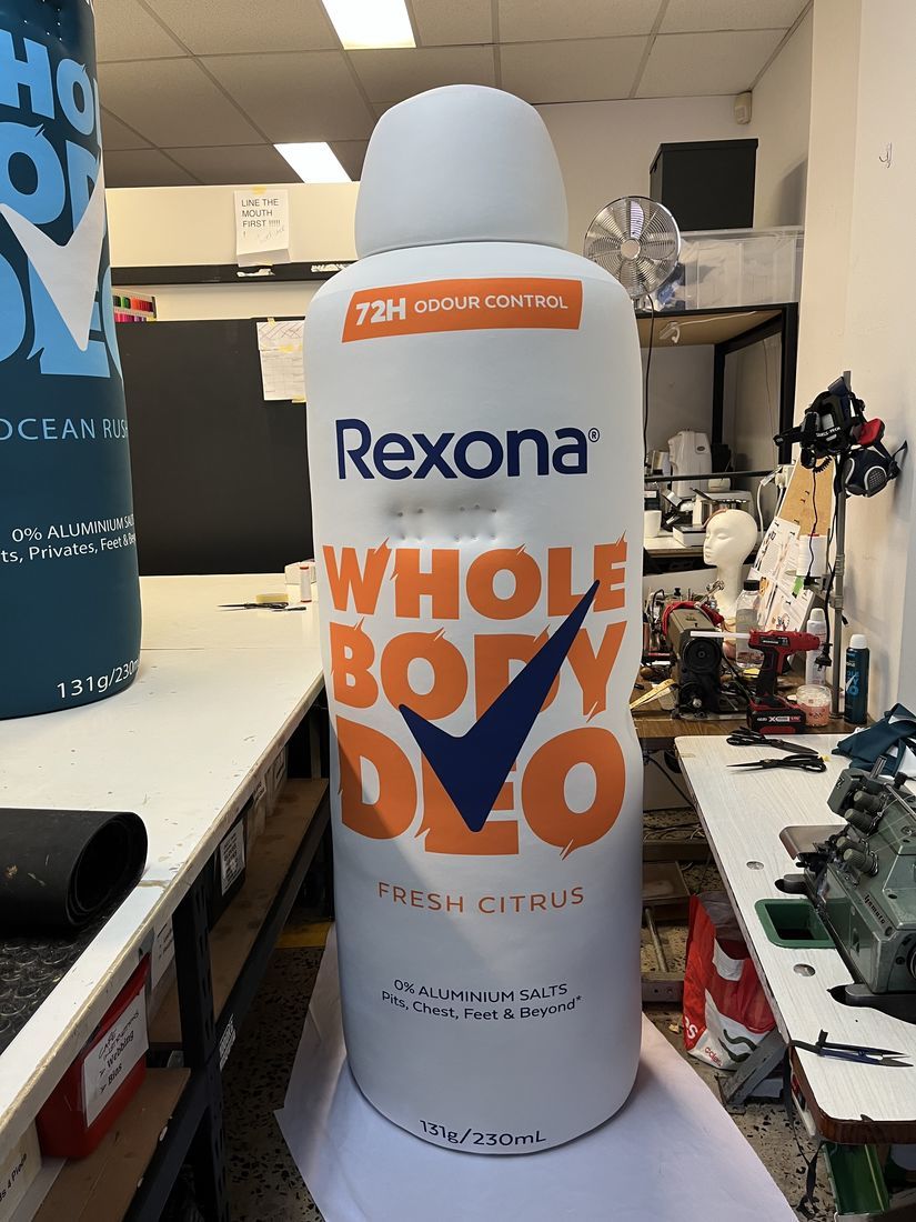 Energy Drink mascot costume; made from foam, padding and printed skin