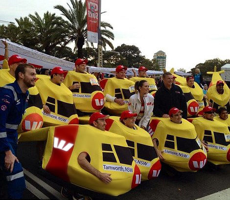 Westpac Helicopter costumes were designed and made as a bulk item ostensibly for the City to Surf event. They have since been featured at numerous activations.